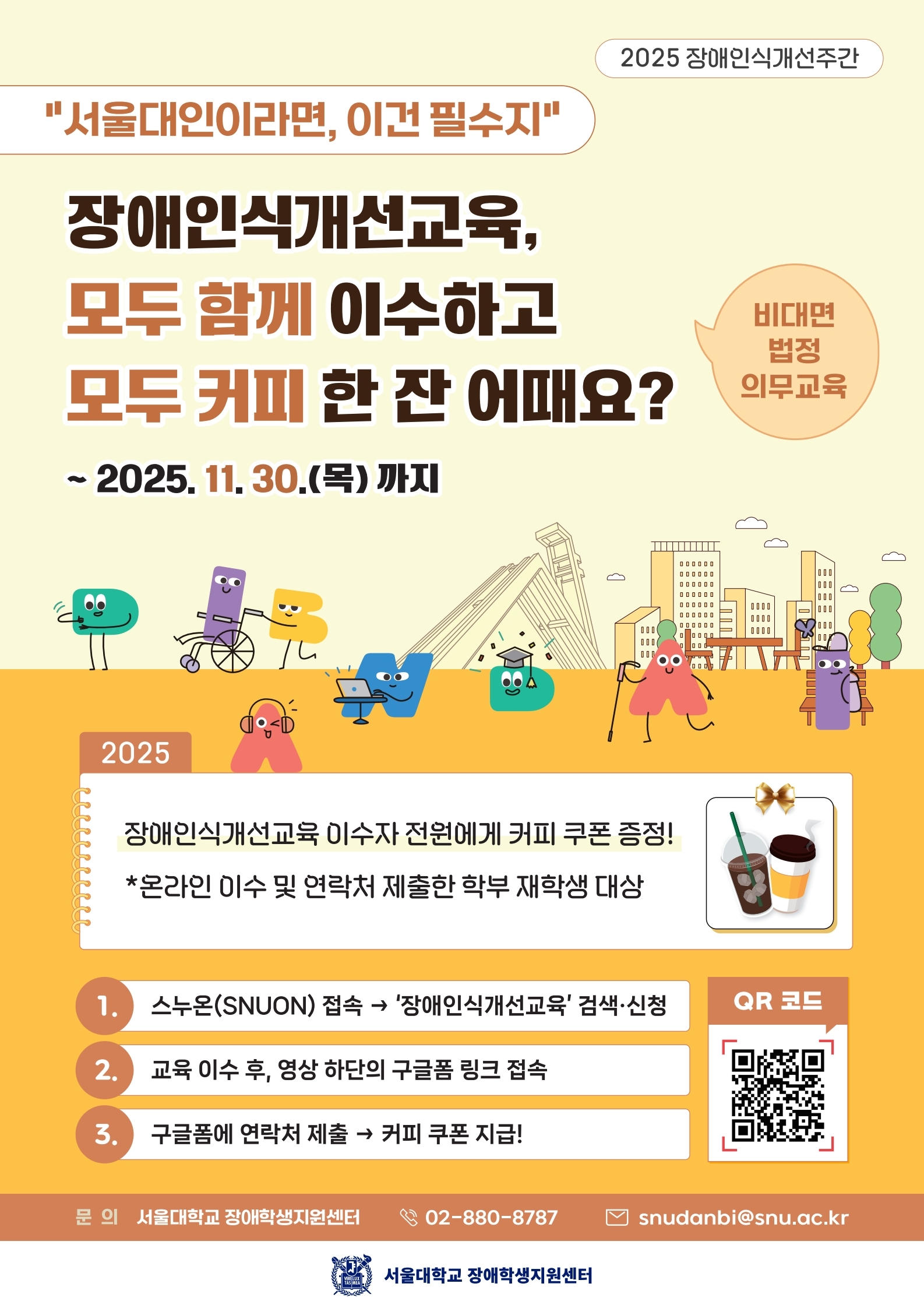 - 학생: eTL SNUON > 장애인식개선교육(학생) 이수