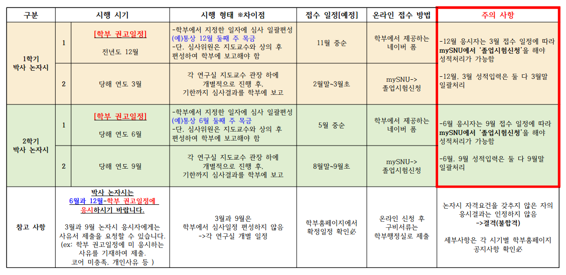 [논자시] 박사과정 학위논문제출자격시험 연간 시행일정 안내